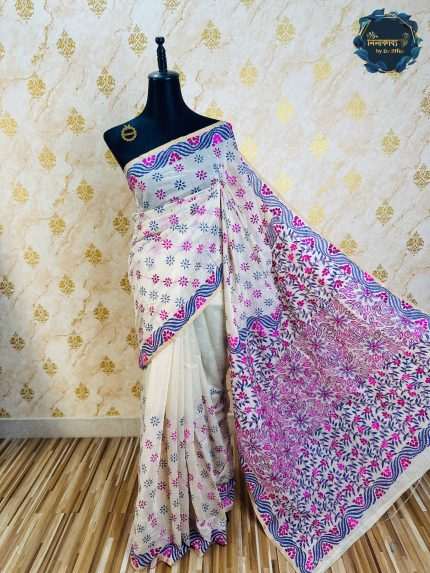 Pure Toshor Monosh Silk Katha Stitch Sharee